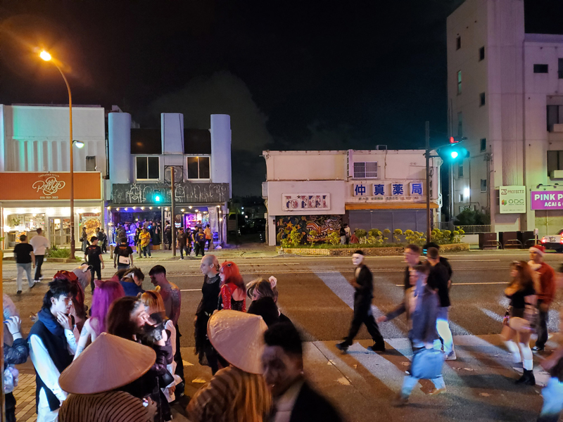 久しぶりに会う仲間と過ごしお腹も大満足のまま店を後にし、ハロウィンだけどいつもと変わらないアーケードを抜けて、ゲート通りまで繰り出してみると、20時くらいでしょうか、あれ?! 通りが結構ワイワイしている……。